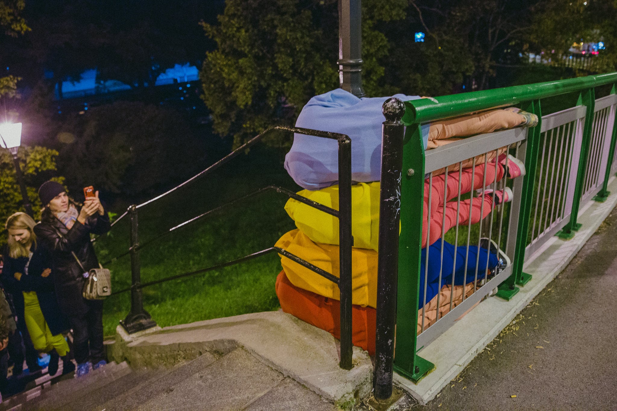 - Pre mňa osobne bol rozdiel najmä v tom, že som tu netancovala. Napriek tomu, že som sa hýbala, nebol podstatný pohyb, ale naopak, statickosť. A taktiež bol výnimočný priestor. Nikdy by ma nenapadlo, že sa napchám dolu hlavou medzi stĺpy, že budem ležať v úzkej štrbinke pod mólom alebo sa poskladám spolu s ďalšími troma ľuďmi na stĺp plotu Ministerstva vnútra.