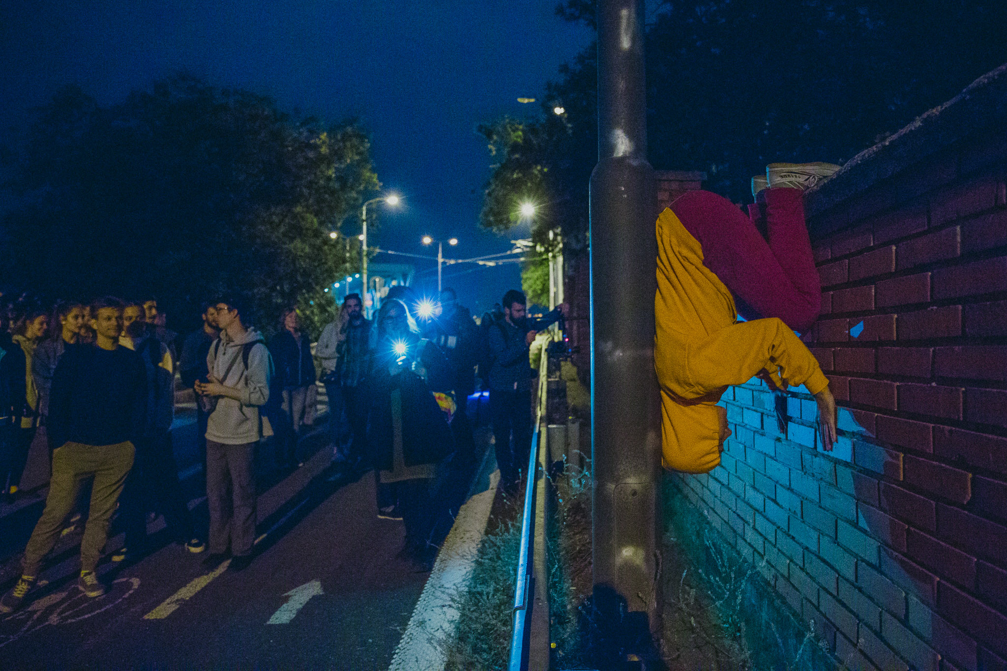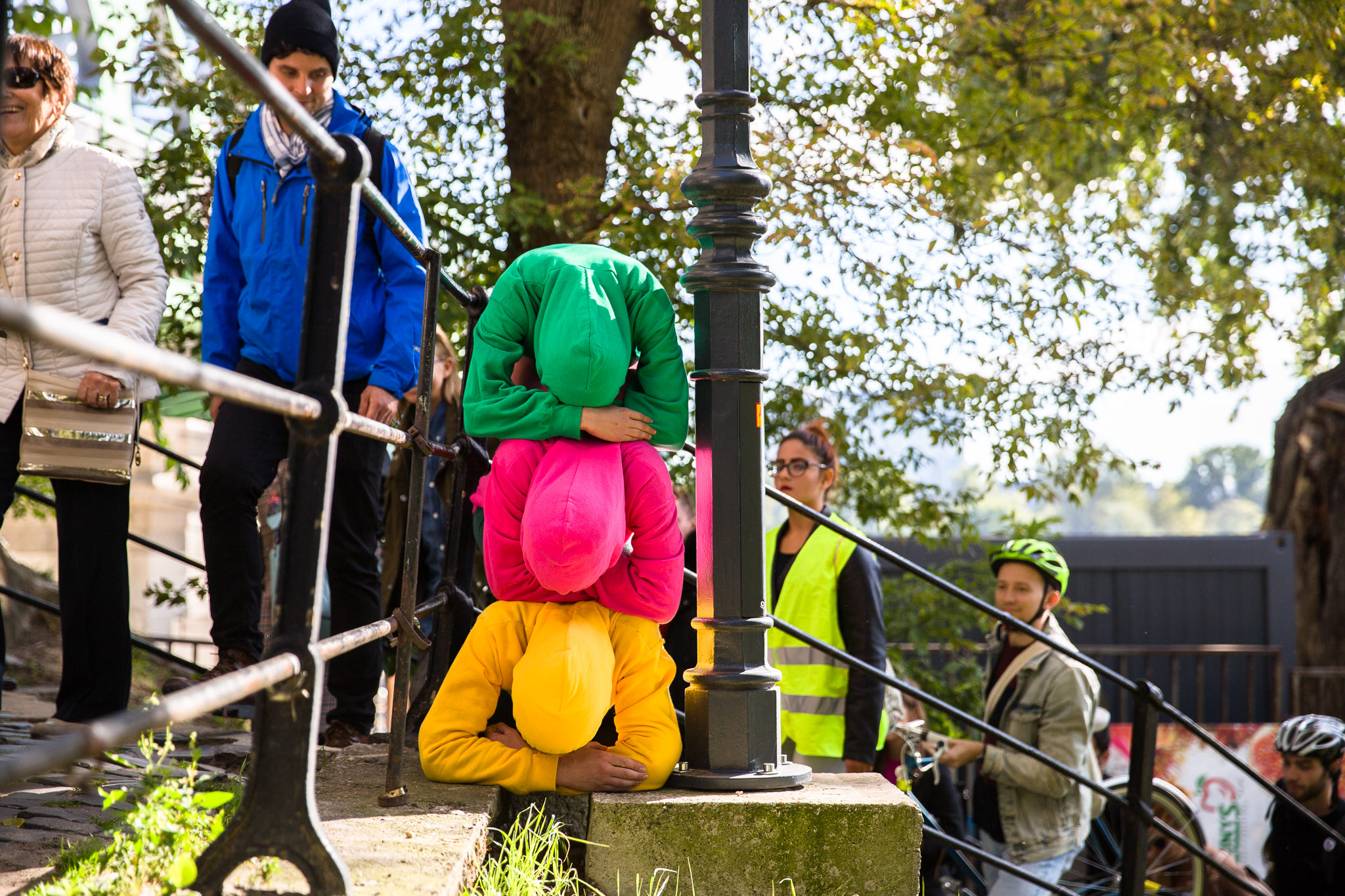 Tanečníci, breakdanceri, parkouristi, jogíni, no dokonca aj mažoretky, bojovníci, či akrobati vytvorili mimoriadne súdržný kolektív, ktorý odolal všetkému. Performeri sa vložili do podhubia mosta, vyliezli na plot Ministerstva vnútra, zavesili sa na Národné divadlo, či dokonca obsadili bilboard. Fyzicky aj psychicky náročnú performance však hlavní aktéri zvládli profesionálne a hrdinsky. Ba dokonca sa svorne zhodujú v tom, že túto skúsenosť by absolvovali znova.