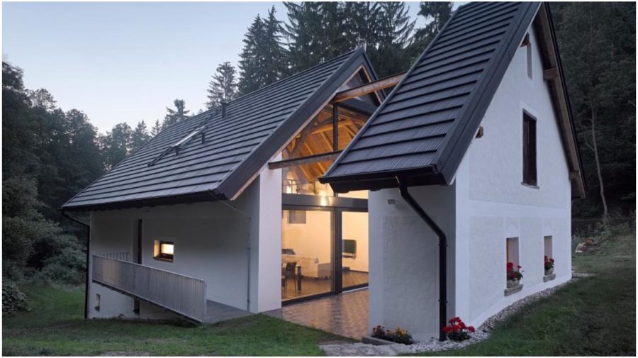 Krov sa rozobral, zrenovoval a vrátil späť do pôvodnej polohy. Z obývacej izby s kuchyňou a jedálňou je možné sa stále pohľadom na prácu predkov kochať – priestor je otvorený zrušením stropu cez dve poschodia.
