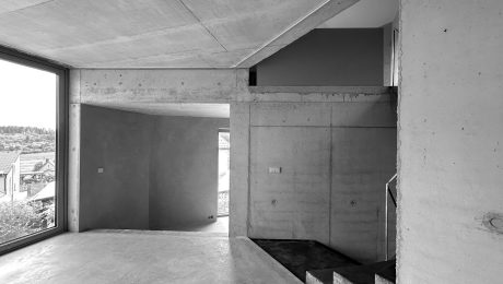 Použité materiály nielenže esteticky dopĺňajú koncept domu, ale zároveň odrážajú udržateľný prístup. Betónové povrchy majú schopnosť akumulovať teplo, čo v kombinácii s orientáciou okien na rôzne svetové strany minimalizuje energetické nároky na vykurovanie.