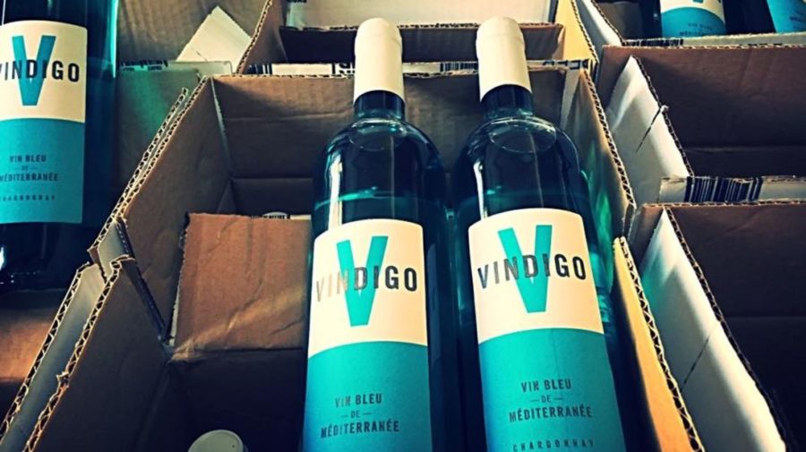 Francúzsko je celosvetovo známe svojimi vysoko kvalitnými vínami od červeného až po biele, no určite nie vďaka vínu modrému. Túto skutočnosť sa rozhodol zmeniť podnikateľ menom René Le Bail, ktorému sa podarilo vytvoriť prírodne farbené víno tyrkysovej farby, ktoré zaujalo vinárskych gigantov v Bordeaux. Pomenoval ho Vindigo a svoju tyrkysovú farbu získava kombináciou bieleho Chardonnay a „šupy“ červeného hrozna.