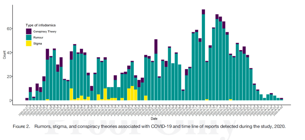 Dezinformácie boli rozdelené do troch kategórií, a to chýry (89 %), stigmy (3,5 %) a konšpiračné klebety (7,8 %). Tím, ktorí informácie preveroval, bol zložený z vedcov, lekárov a epidemiológov. Spoločné overili 2 311 informácií o koronavíruse, z ktorých 1 856 (82 %) bolo označených ako nepravdivých, 204 (9 %) ako pravdivých, 176 (8%) ako zavádzajúcich a 31 (1%) sa nedali overiť.