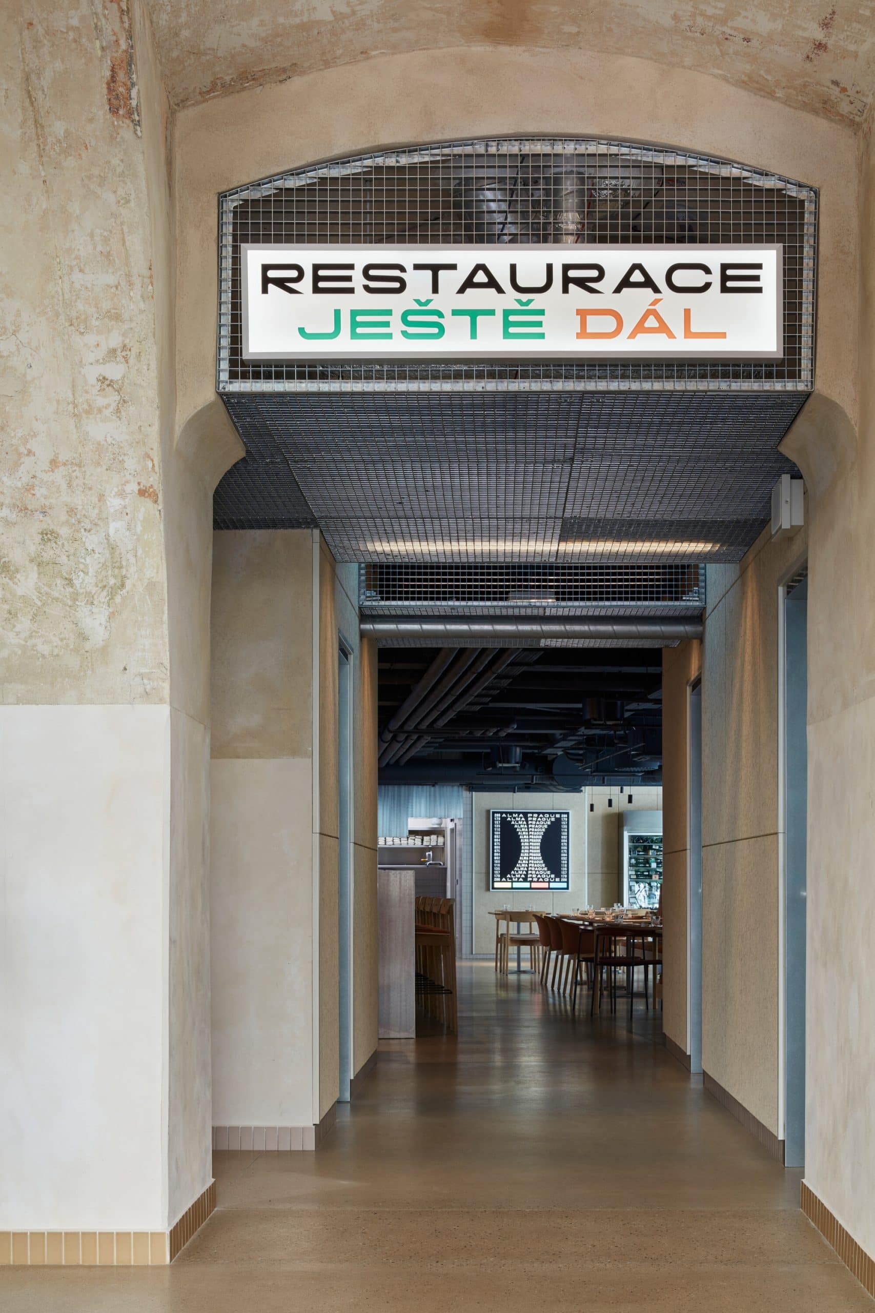 Striedmy interiér dopĺňajú priestorové „funky lightboxy“, ktoré ho presvetľujú ako svojou nevšednou farebnosťou, tak formuláciami a grafickým dizajnom.