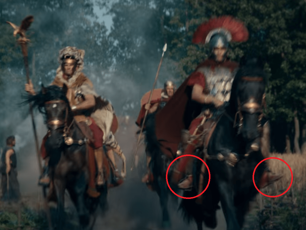 Už od prvej epizódy môžeme pri jazdcoch vidieť používanie strmeňov. Strmene sa však v tom období na území Európy nepoužívali. Prvé zmienky o ich použití máme z Indie. V klasickom svete sa objavili až v 9. storočí. To je o 800 rokov neskôr!