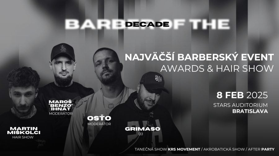 Výnimočný galavečer plný módy, talentu a kreativity. Práve taký bude Barber of the Decade, prestížne ocenenie pre najlepšieho barbera Čiech a Slovenska za poslednú dekádu. Tento exkluzívny event sa uskutoční 8. februára 2025 o 18:00 v Stars Auditoriu v Bratislave.