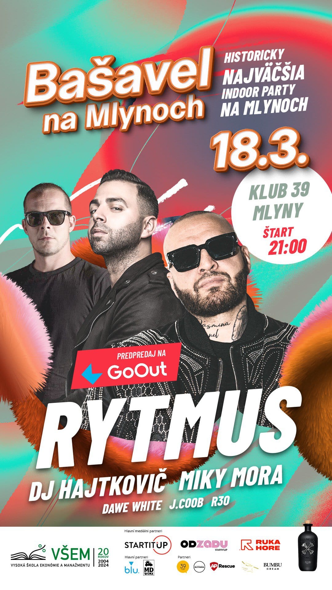 Mlynská dolina sa 18. marca 2025 stane centrom študentského nočného života. Bašavel na Mlynoch prinesie do legendárneho Klubu 39 elektrizujúcu atmosféru a exkluzívne vystúpenia. Headlinermi večera budú Rytmus, Miky Mora a DJ Hajtkovič, ktorí sa postarajú o nezabudnuteľný hudobný zážitok.