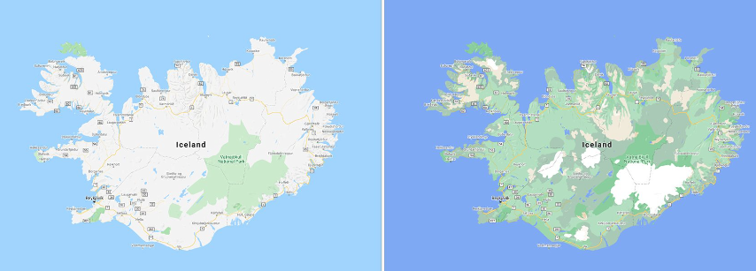 Veď sa len pozrite na Island teraz a pred pár mesiacmi. Google tieto rozdiely detekuje vďaka veľmi kvalitným satelitom, ktoré snímajú celý zemský povrch.