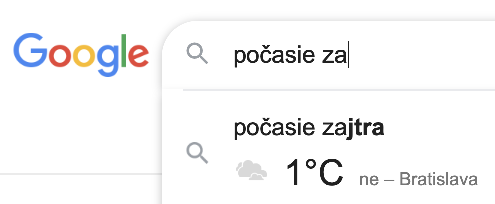 Skúste si vyhľadať „počasie zajtra“ a ešte kým dopíšete, uvidíte, koľko bude stupňov.