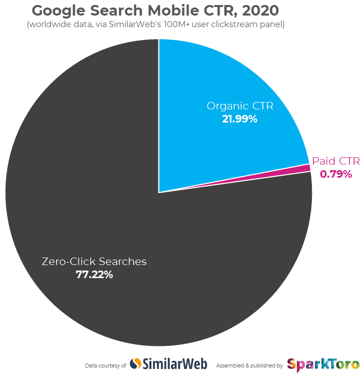 Až takmer 80 % vyhľadávaní v Google cez mobil nevedie k prekliknutiu sa na niektorý z výsledkov vyhľadávania. Prečo? Google poskytne všetky informácie bez nutnosti hľadať ďalej.