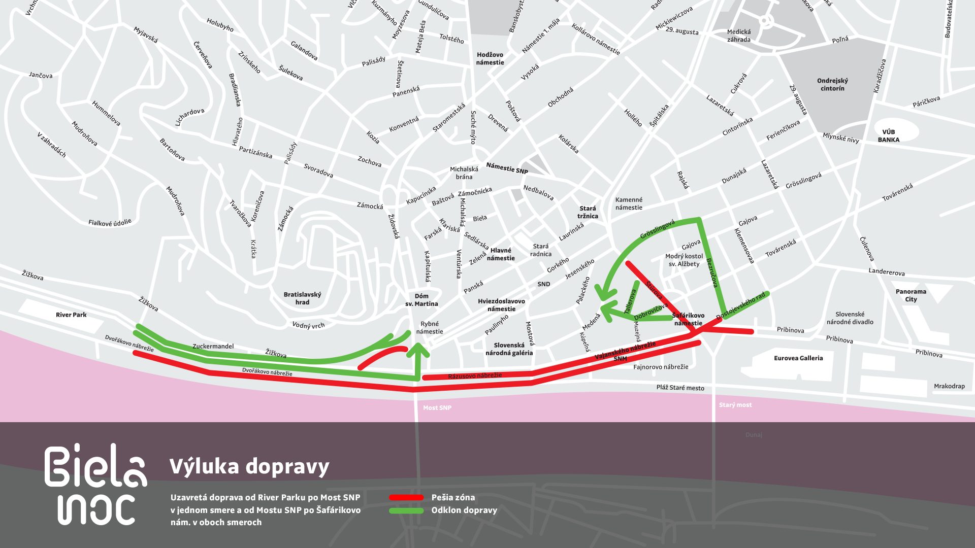 „Festival Biela noc patrí medzi obľúbené bratislavské podujatia, ktoré hlavné mesto podporuje. Tak ako v minulosti, tak aj tento rok poskytujeme organizátorom súčinnosť pri zabezpečení bezproblémového priebehu akcie, a to najmä posilnením dopravy, zvýšením bezpečnosti zo strany mestskej polície, ale aj zabezpečením čistoty po skončení podujatia. Vyhoveli sme aj požiadavke organizátorov a počas podujatia uzatvoríme pre autá dunajské nábrežie, kde sa vytvorí festivalová pešia zóna“, povedal primátor Bratislavy Ivo Nesrovnal.