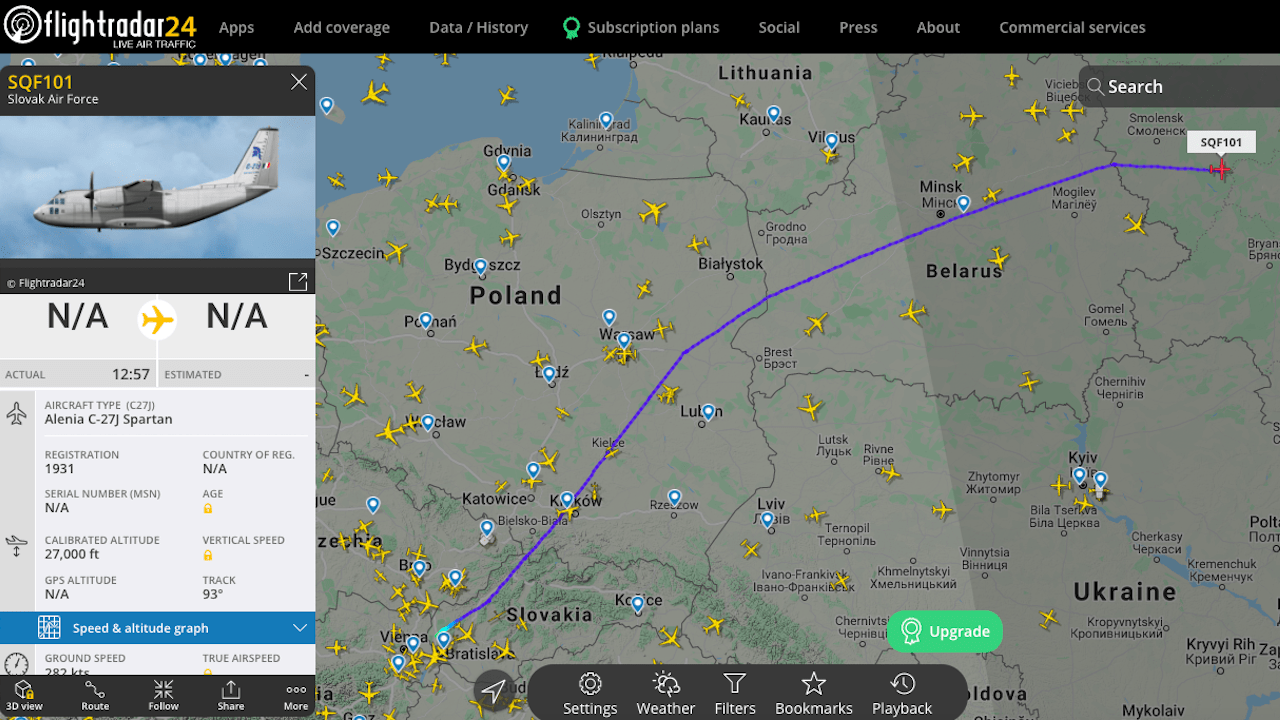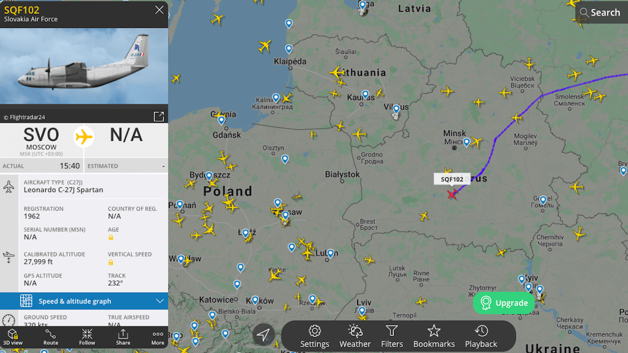 16:50 Z Bratislavy smerom na Moskvu letí ďalšie lietadlo typu Spartan, informuje Denník N.