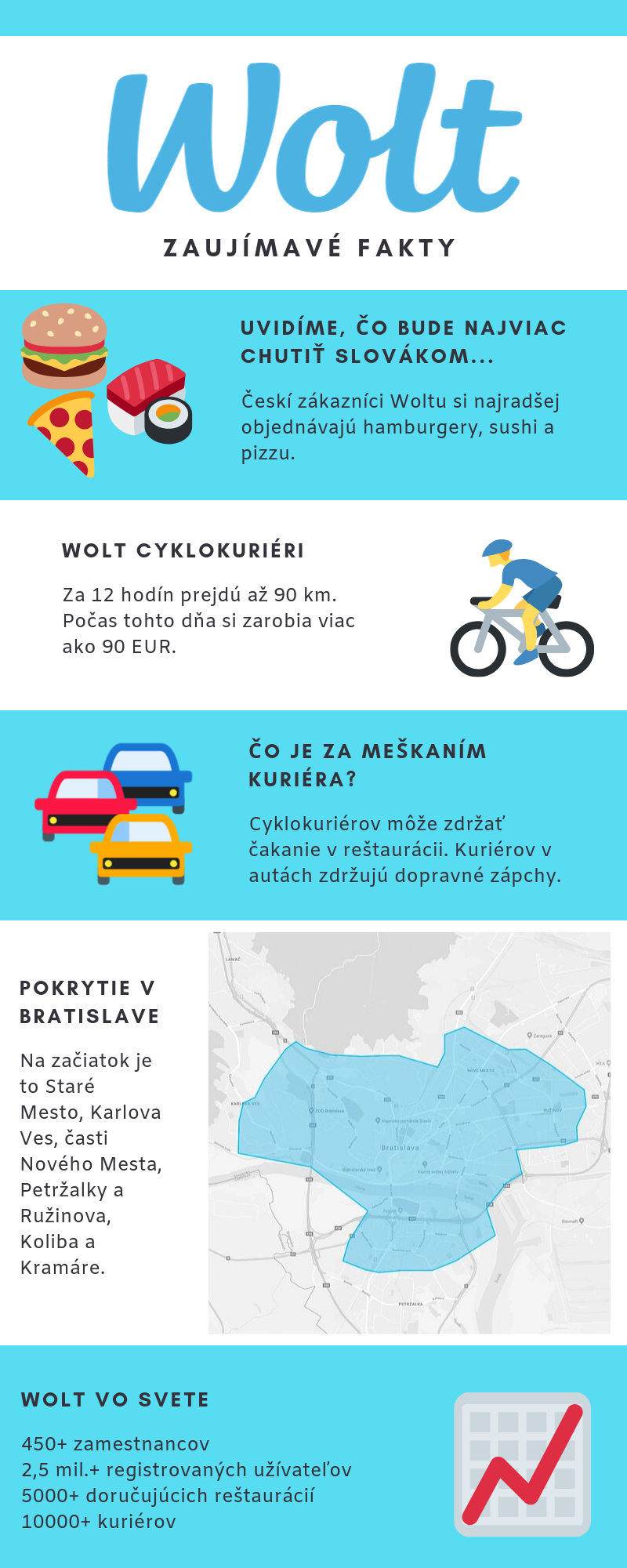 Wolt je fínska spoločnosť založená v roku 2014, ktorá úspešne pôsobí už vo viac ako 19 krajinách, 60 mestách a má už viac ako 2 500 000 registrovaných používateľov. Využíva moderné používateľské prostredie a kladie dôraz na kvalitu ponúkaných služieb.