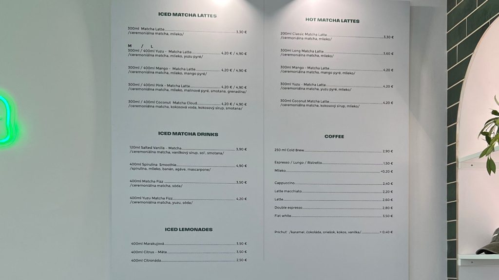 Matchiareň sme navštívili aj my a ochutnali sme ich klasickú horúcu matchu s bezlaktózovým mliekom aj ľadovú matchu s karamelovým sirupom. Do 4 eur sme mali pred sebou chutný nápoj. Ak chceš skúsiť japonskú matchu, zájdi do Trnavy na Hornopotočnú 1.