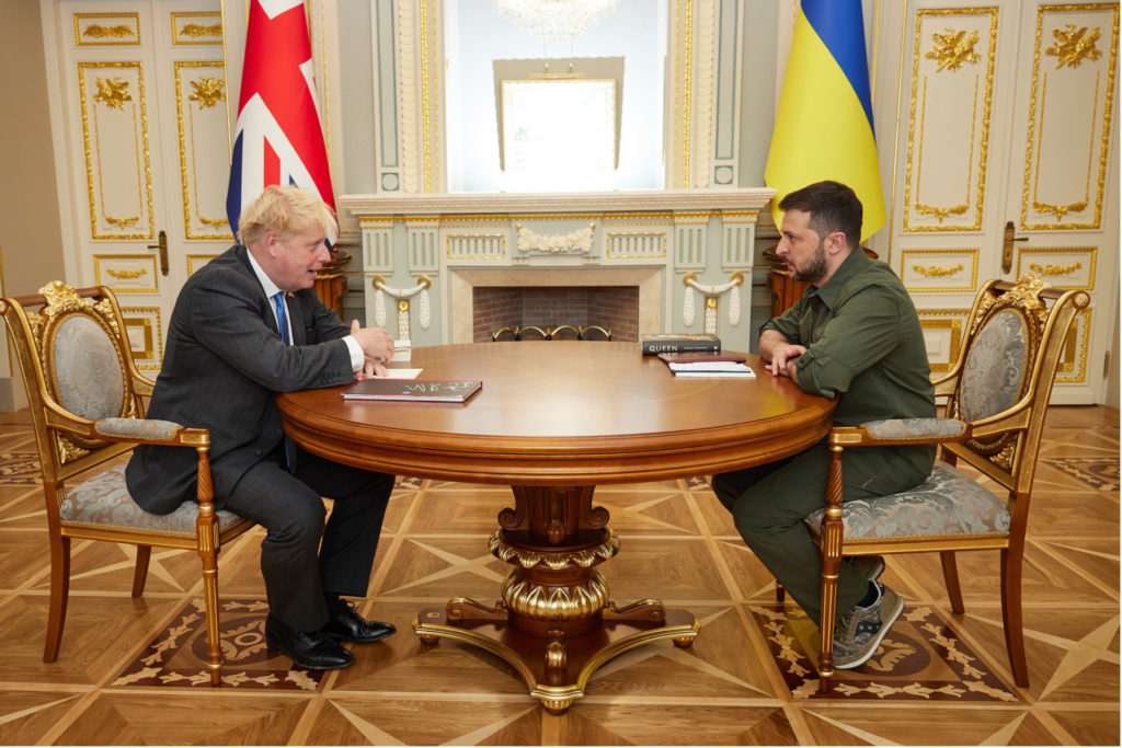 Boris Johnson si podáva ruku s Volodymyrom Zelenským