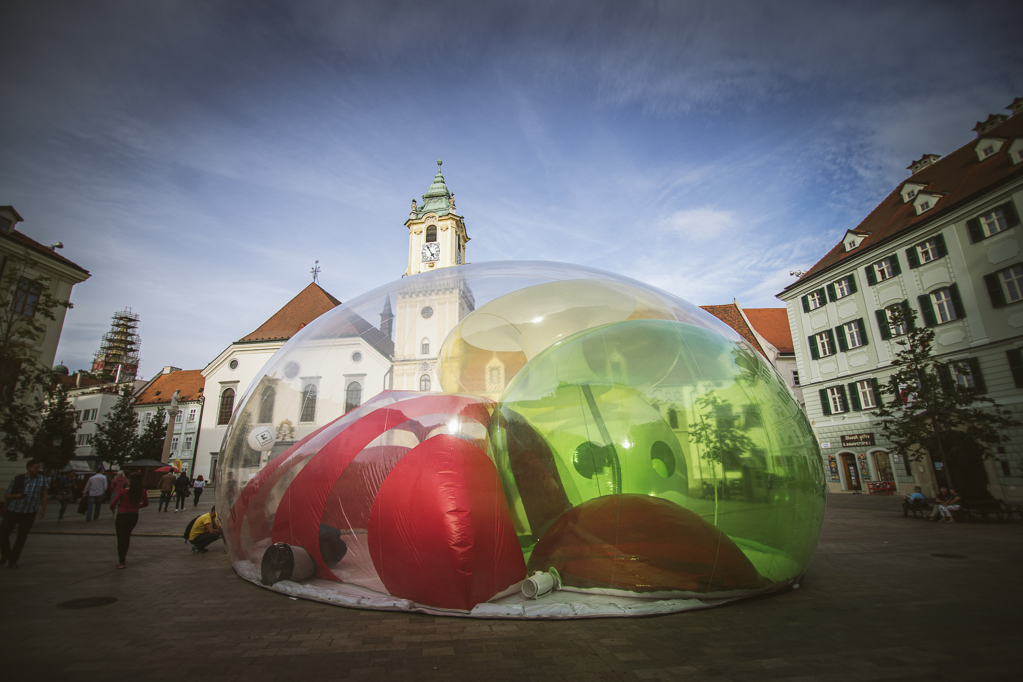 • Jedno z najpopulárnejších miest plné sprievodného programu bola 13-metrov dlhá bublina na Hlavnom námestí - The Big Mass od legendárnych Plastique Fantastique!