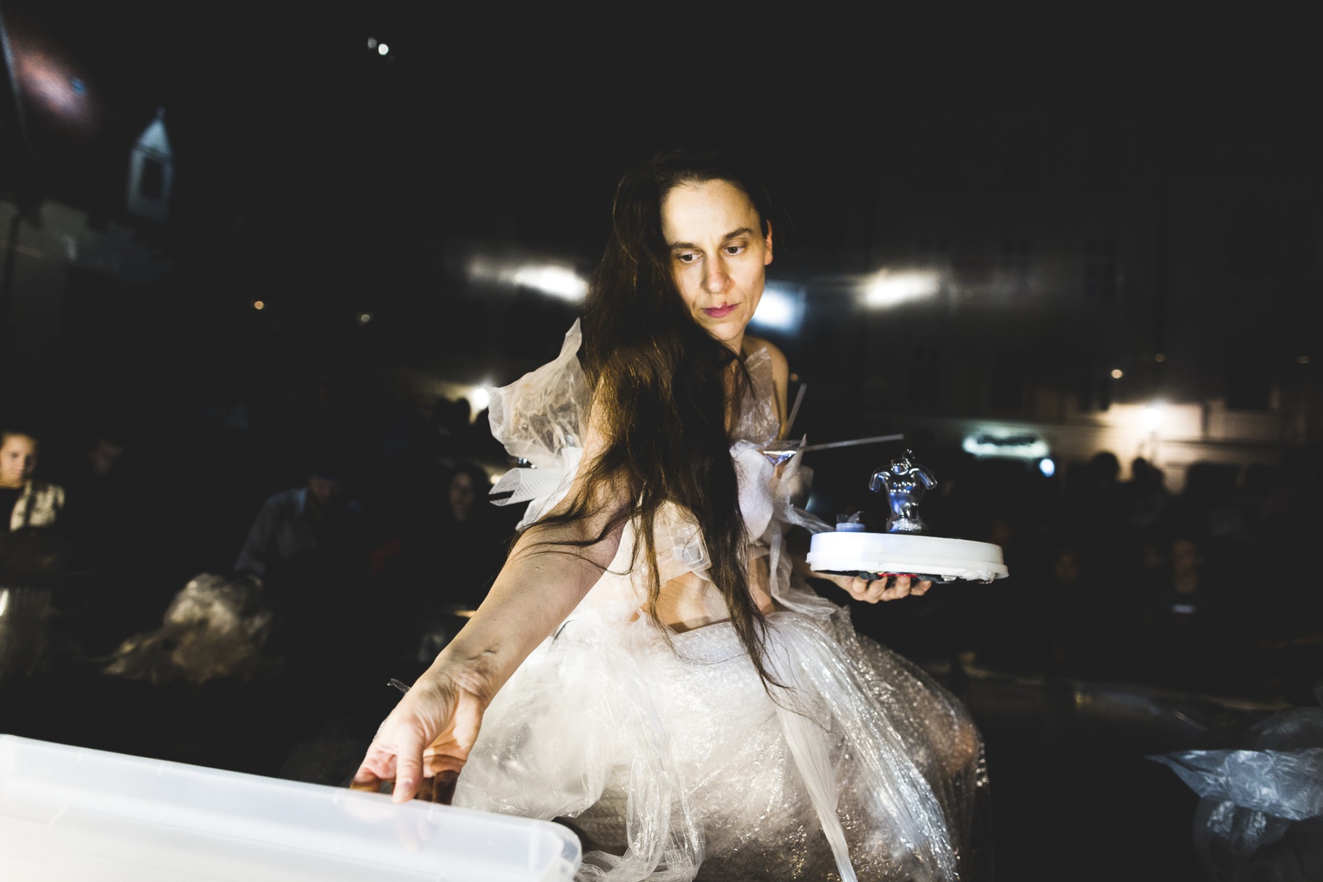 Jednoznačným vrcholom programu bola podmanivá performance slovenskej umelkyne Doroty Sadovskej, s názvom Doba plastová. V nej autorka v prítomnosti piatich robotov, reagujúcich na podnety z publika, v baletno-trashovej estetike stvárnila zahltenie našich každodenných životov výrobkami z plastu.