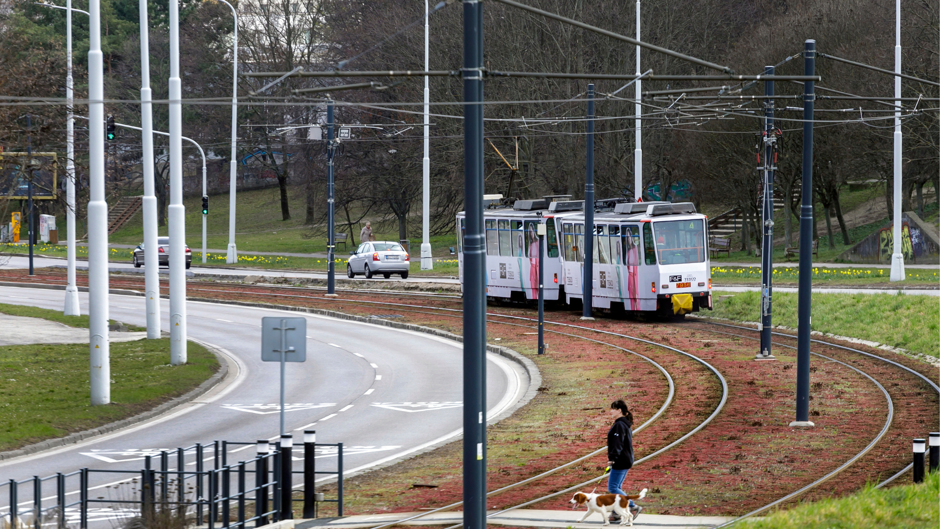 Na snímke električková trať v mestskej časti Karlova Ves v Bratislave.