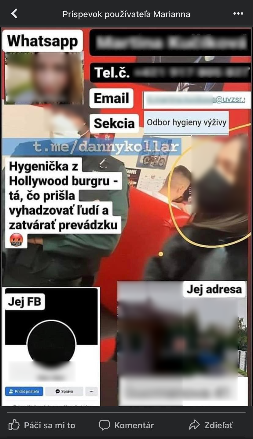 Z opatrení sa vysmieva, verejne kritizoval aj hygieničky, ktoré prišli jeho prevádzku skontrolovať. Už niekoľko dní internetom kolujú fotky, kontakty a adresa jednej z nich.