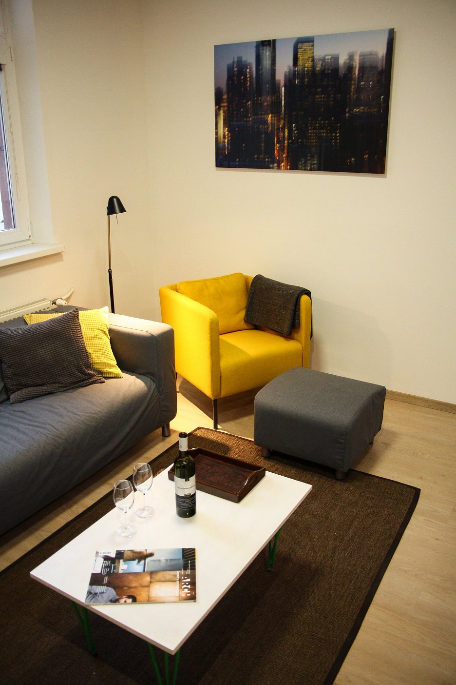 Priestranný interiér s podlažnou plochou 70 m2 a netradičnou dispozíciou sa nachádza v lukratívnom historickom centre Bratislavy. S ohľadom na účel využitia, keďže byt je určený na prenájom, bola od začiatku kladená požiadavka hlavne na funkčnosť a jednoduchosť priestoru ako aj jednotlivých nábytkov.