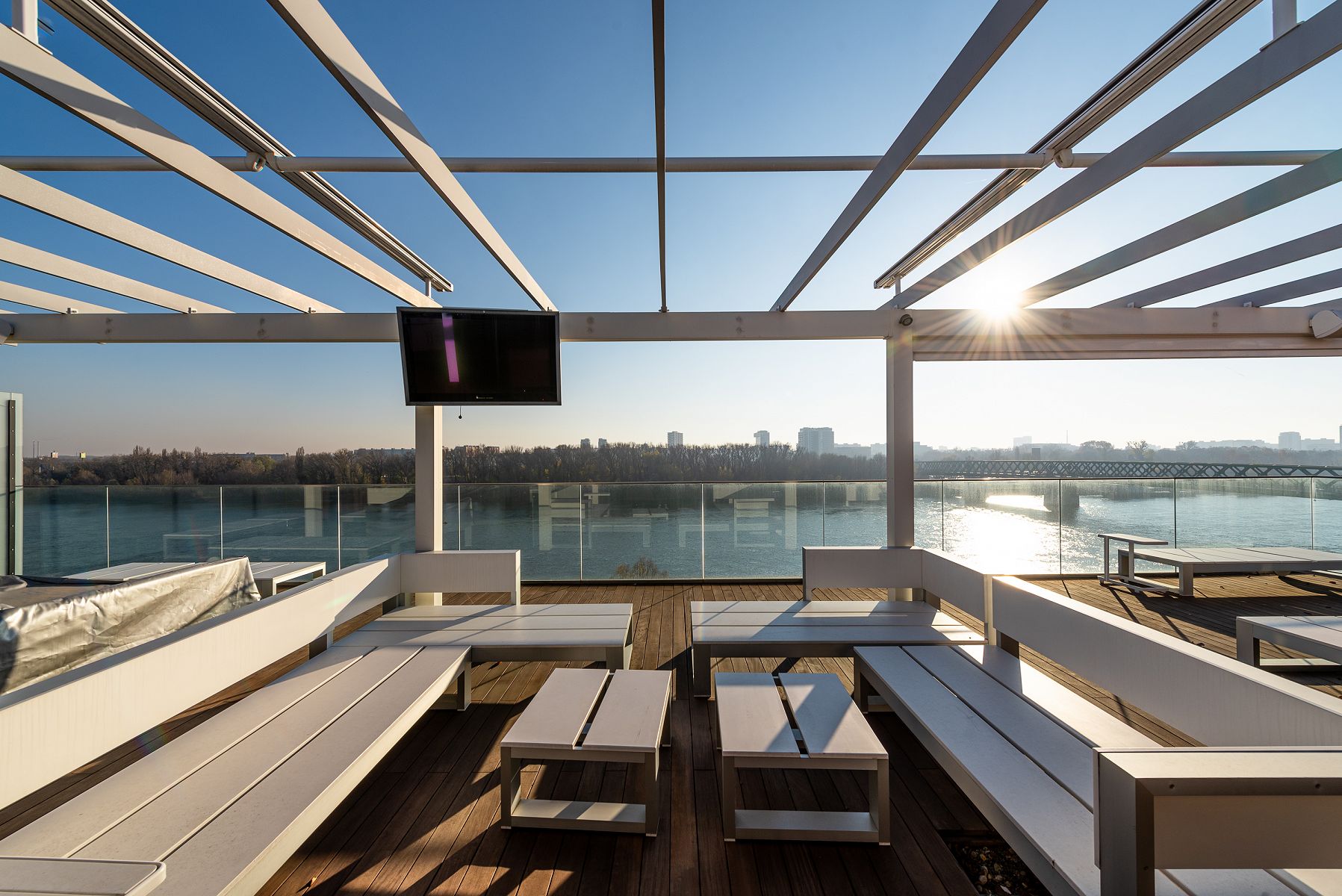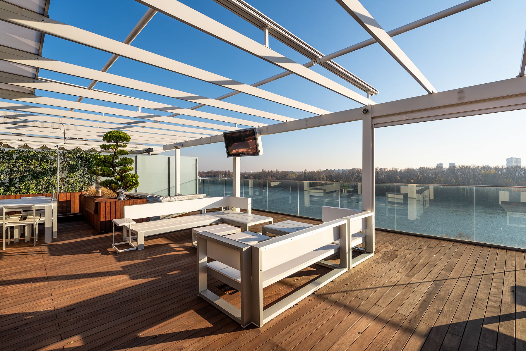 Zaujímavosťou je, že z prvého podlažia sa dá dostať na druhú terasu, ktorá je orientovaná južne na Dunaj. Táto terasa disponuje vlastnou saunou, vírivkou a exteriérovým nábytkom.