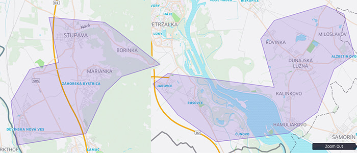 Pokiaľ sa nachádzaš na mieste, ktoré je vyznačené na nižšie uvedenej mape, akcia funguje automaticky.