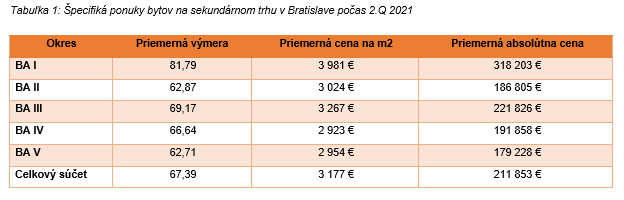 Najviac za byt ale zaplatíš v okrese Bratislave I, kde sa momentálne predáva jeden meter štvorcový za niečo pod 4 000 tisíc eur. Najnižšia jednotková cena sa nachádza v Bratislave IV, primárne v Dúbravke a Karlove Vsi, kde sa ceny pohybujú 2 954 €/m². Celkovo sa ale najlacnejšie byty nachádzajú v Bratislave V, poväčšine v Petržalke. V priemere sa tu byty ponúkali za 179-tisíc €, čo však súvisí s nízkou rozlohou, ktorá bola pri 62,71 m² spomedzi bratislavských okresov, najnižšia.