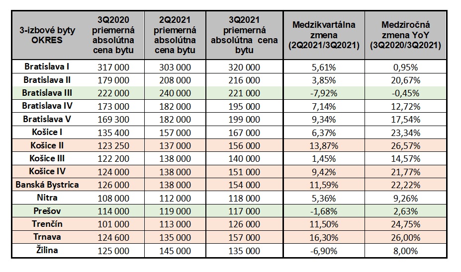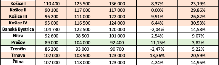- V treťom štvrťroku 2021 sa kvartálnymi skokanmi stali Košice a Trnava