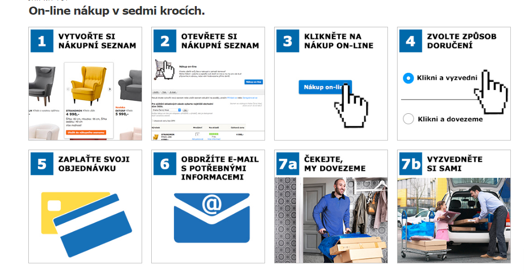 IKEA v Českej republike zaviedla dlho očakávaný online objednávkový systém. Nie len, že si zákazníci budú môcť cez e-shop všetok tovar objednať, ale môžu si ho za poplatok nechať doručiť priamo domov. IKEA túto novú službu nejaký čas testovala, aby mohla vychytať všetky „muchy“. Tovar sa síce dal objednať online, no vyzdvihnúť si ho zákazníci museli na kamennej predajni. Pri tejto službe je výhodu aj to, že tovar je možné až do 365 dní vrátiť bez udania dôvodu.