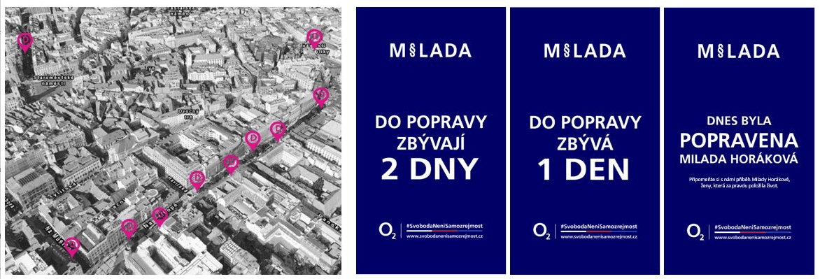 Operátor sa rozhodol upozorniť na ne vo svojej online komunikácii a to prostredníctvom špeciálnych lokalizačných SMS a na vybraných citylight nosičoch rozmiestnených po Prahe práve v deň jej popravy. Zmapovať sa rozhodli posledné tri dni jej života.