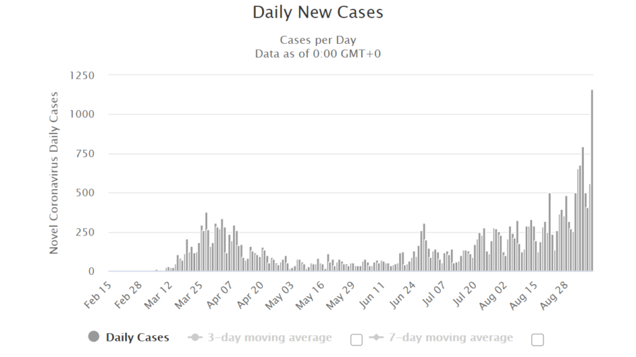 Predchádzajúci rekordný prírastok nových prípadov za deň (796) úrady naposledy zaznamenali v piatok.