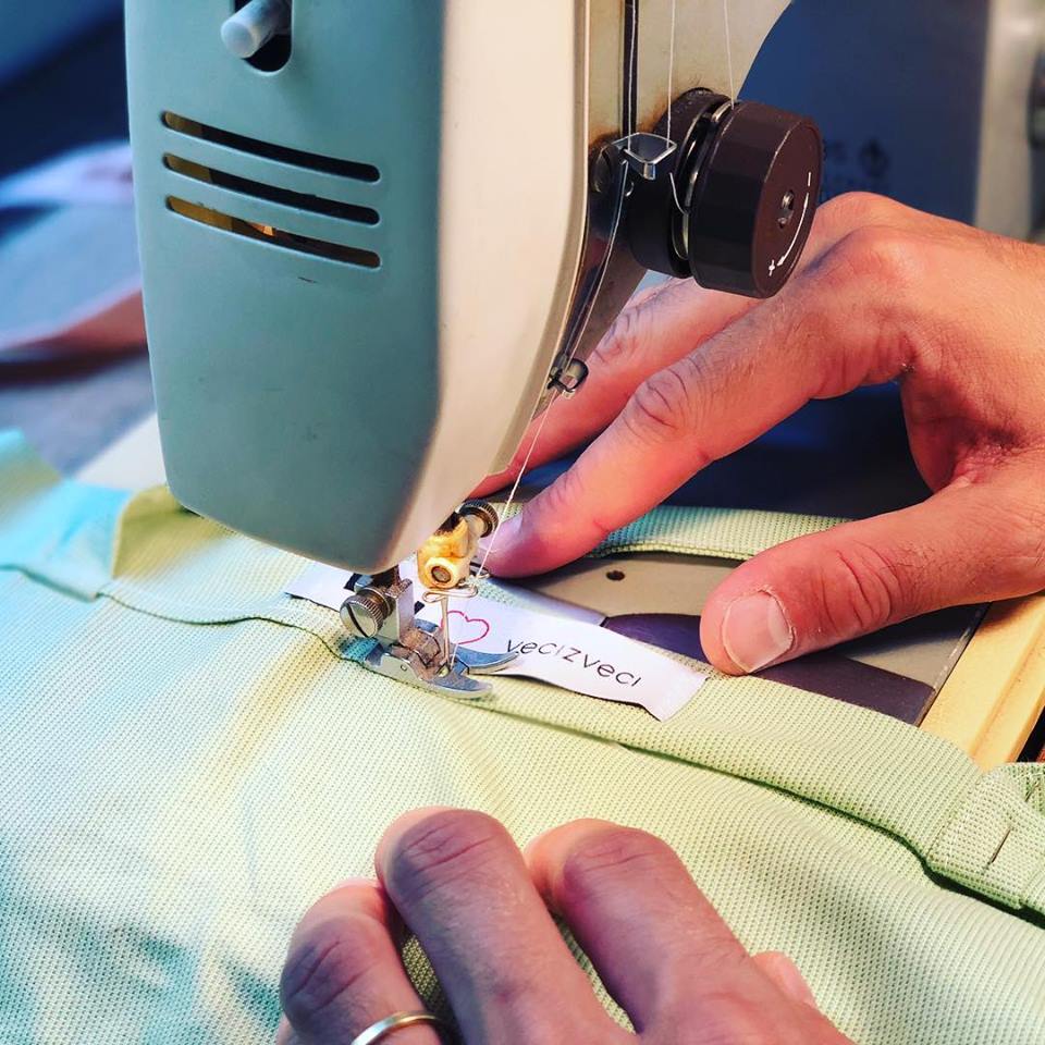 Samotná výroba tašiek VecizVeci sa realizuje v Rakúsku, na Slovensku a v Čechách. Každý kus je originál a každý je tvorený vlastnoručne – od vyrezania strihu z košiel, džínsov alebo tričiek, až po samotné šitie. Zatiaľ čo sa vo velkých produkciách na strihanie používajú stroje, čím sa skracuje doba strihu, naše tašky sú kompletne strihané, resp. rezané ručne a následne šité na šijacom stroji.