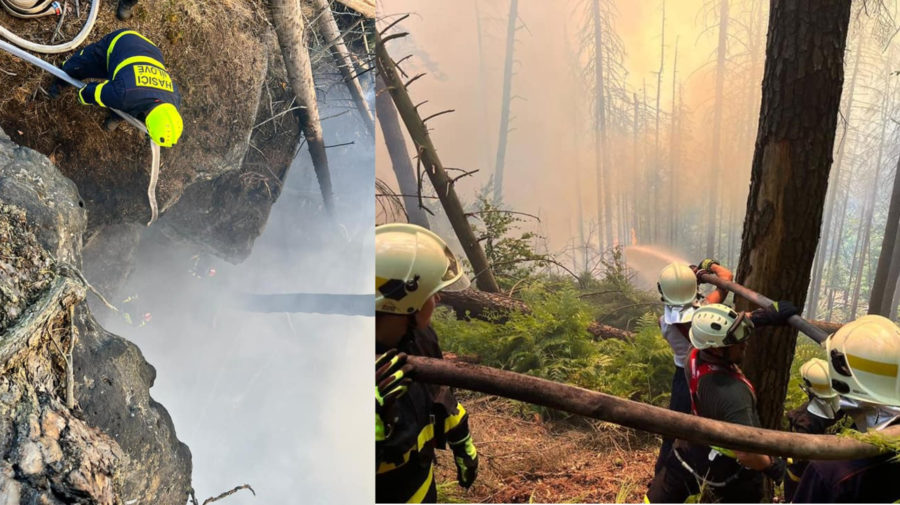 S požiarom lesa o rozlohe troch hektárov, ktorý sa rozhorel v lokalite Malinový důl pri obci Hřensko v okrese Děčín, od popoludnia bojuje 26 jednotiek i lezecká skupina hasičov. Asistuje im hasičské lietadlo, policajný vrtuľník a svoju helikoptéru na pomoc poslala aj armáda.
