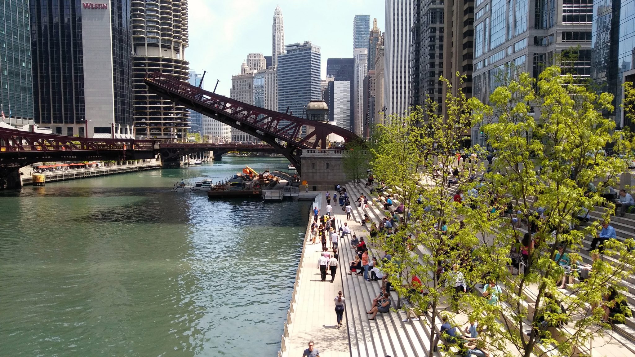 - Chicagska nábrežná promenáda „Chicago Riverwalk“ ponúka priestor nielen pre obchod, ale aj oddych a kultúrne vyžitie.