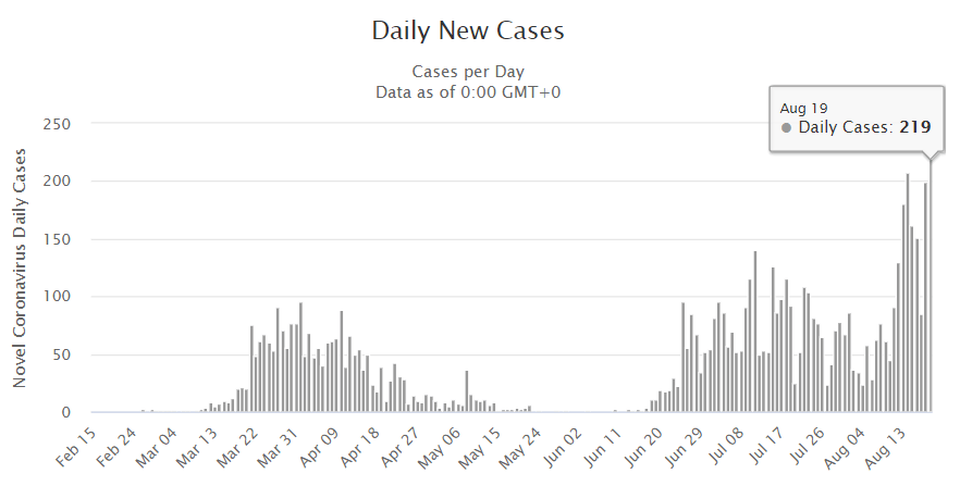 Chorvátske úrady uviedli, že za posledných 24 hodín pribudlo 255 nových nakazených koronavírusom, pričom tento denný počet neustále narastal celý uplynulý týždeň. V balkánskej krajine so 4,19 milióna obyvateľov stúpol počet potvrdených aktívnych prípadov infekcie na 1689.