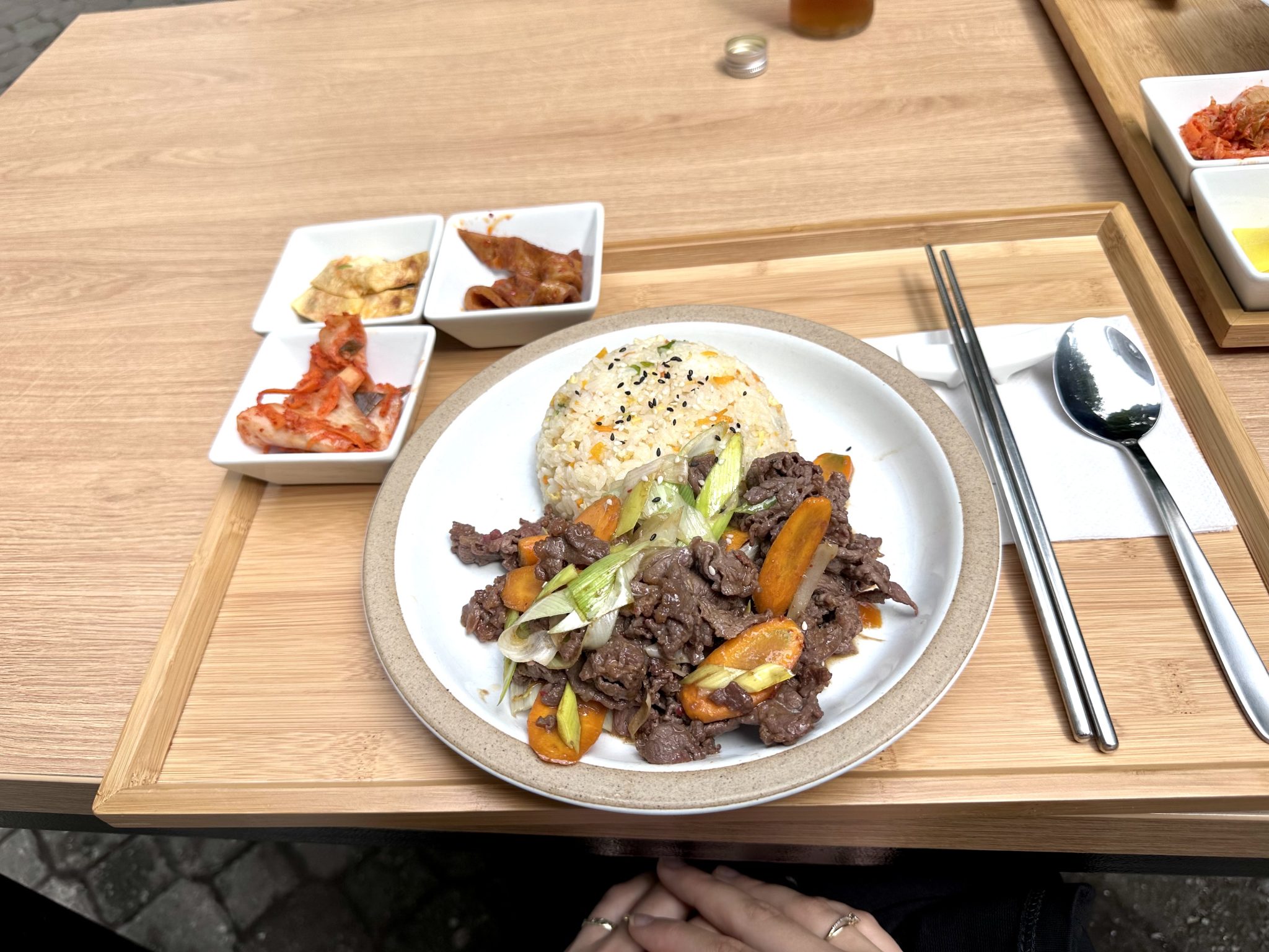 Bulgogi, teda marinované a opečené plátky hovädzieho mäsa, je nesmierne voňavo ochutené a len krátko osmahnuté so skvelo dochutenou vajíčkovou ryžou s mrkvou a kopcom chrumkavej zeleniny. Najväčšími pozitívami bolo mäso, ktoré sa takmer trhalo, a bolo vidno, ako je ružovkavé a výborne ochutené, a ryža, ktorej chuť a šťavnatosť by bolo len ťažké prekonať.