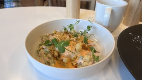 Toto je ešte znásobené namočením do domáceho pribináčika, ktorý by sa okamžite mohol predávať ako kelímok so sebou domov a bol by to hit. Dotyk slaného karamelu a kúsky ovocia dotvárajú harmonický celok a garantujem, že toto jedlo si zamiluješ. Jeho cena tu je 6,9 €, čo je za danú porciu a suroviny viac než fér.
