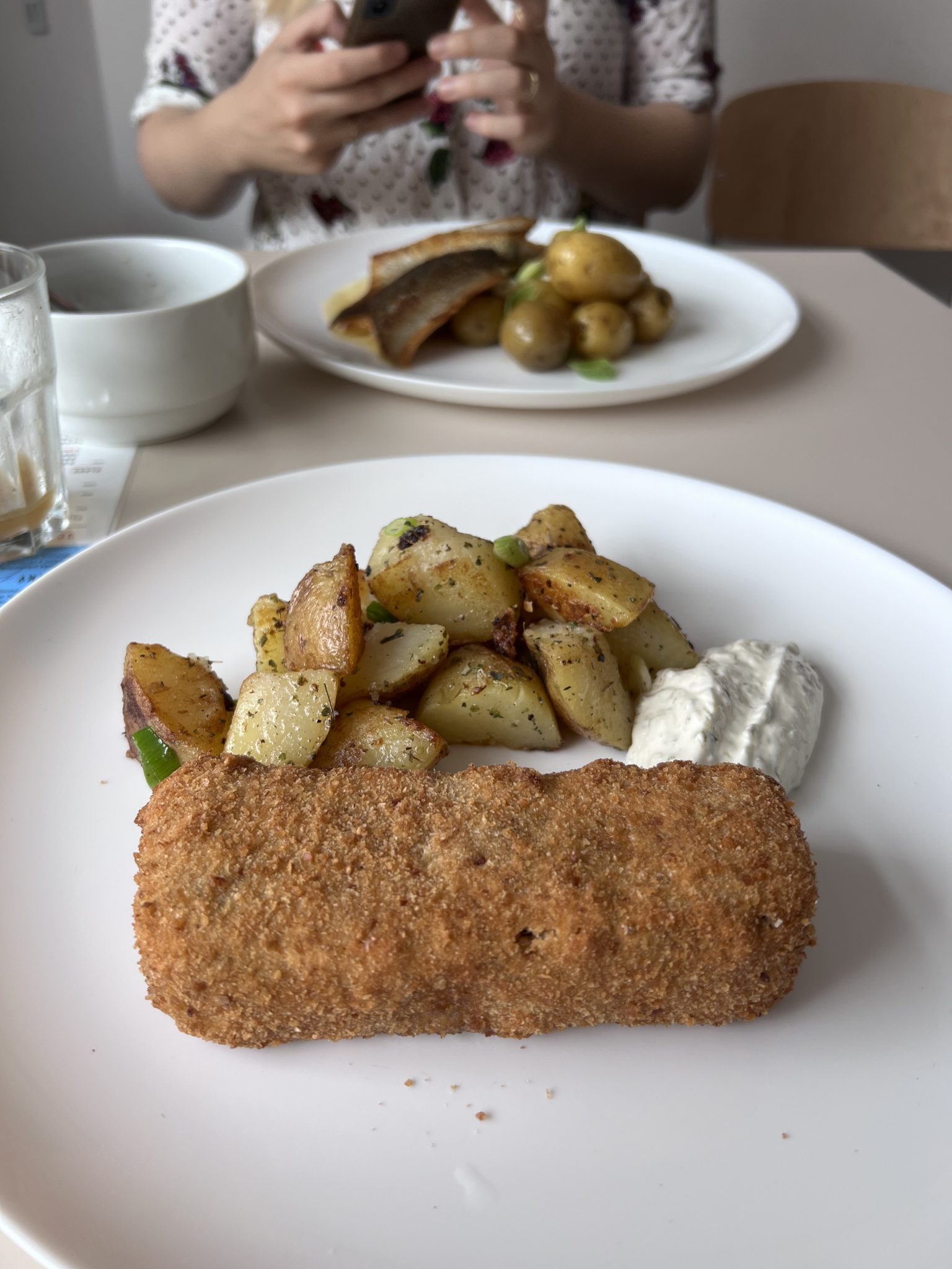 Silná chuť, perfektná konzistencia a ultimátna šťavnatosť (12,9 €). Ďalším je kedysi stálica menu, dnes už podpultovka – vyprážaná tlačenka. Jemne badiánová, silno mäsová, aby držala v trojobale, ktorý je majstrovským dielom – nerozpadá sa, drží obsah a je absolútne chrumkavý.