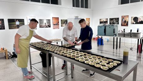10-chodové, chuťami a nápadmi nabité menu vytvorilo trio Pán Tymián, skvelý kuchár a spoluorganizátor Martin Maňas a michelinský šéfkuchár a skvelý človek Palo Sekerka.