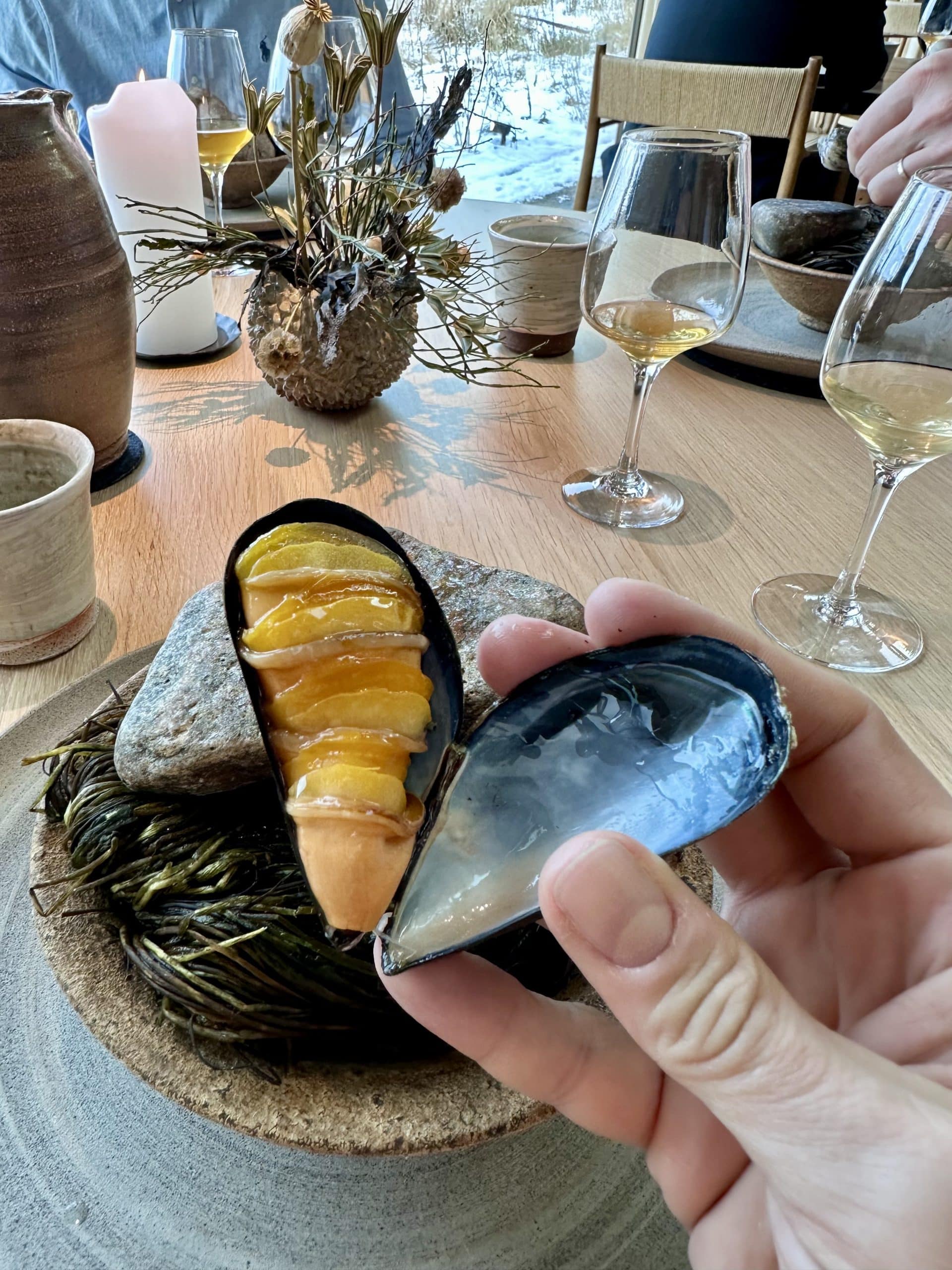 Prešiel som zasneženým priestranstvom okolo skleníkov, popod bránu z morských rias. Moje kroky ma doviedli k nádhernej severskej, drevom obloženej budove s dverami posiatymi mušľami. Zmena sezóny v NOMA nie je totiž len záležitosť kuchyne.