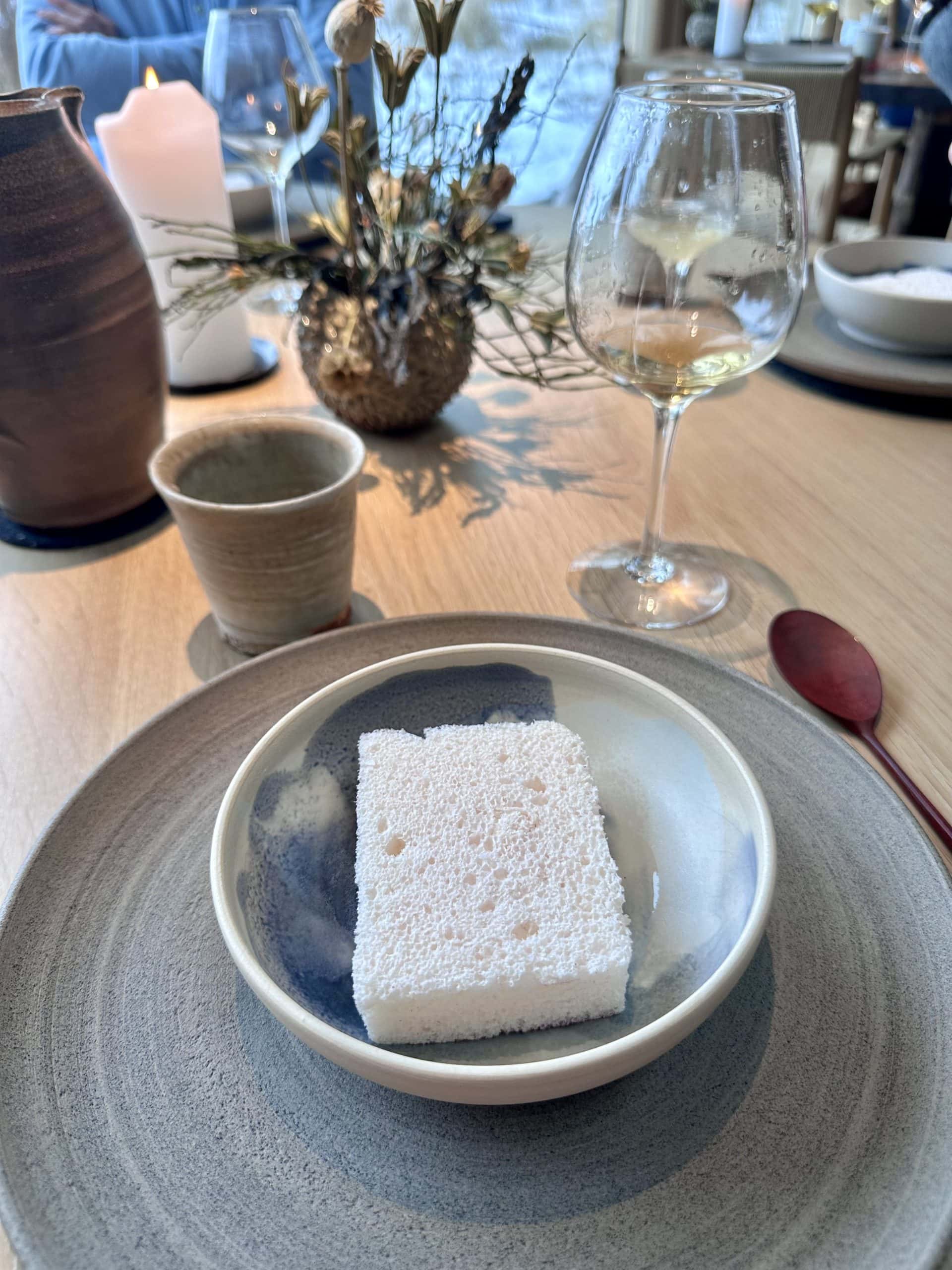 Ako prvý prišiel absolútny „banger“ v podobe nórskej langusty. Umelecké dielo na tanieri predstavovala absolútne vyčistená langusta, nasladlá, veľmi jemne dochutená. Vynikala jej neskutočná vôňa, pevné a pružné mäso. Chute dopĺňal prach z planktónu na okraji taniera, silná omáčka z masla a kelu a vývar z rias.