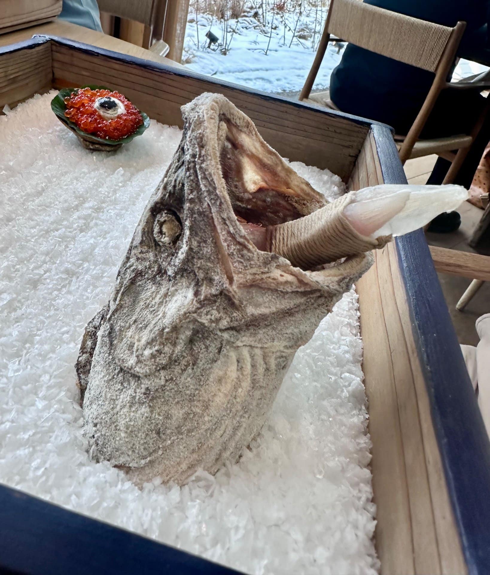Naopak, najzvláštnejším chodom bol jazyk a oko z tresky. Jazyk síce chutil skvelo vďaka potretiu žĺtkom a obsypaniu opraženými semiačkami, ale jeho konzistencia bola jedna z najnepríjemnejších a najneuchopiteľnejších, aké som v živote mal v ústach. Zvláštne bolo aj oko s kaviárom v chrumkavom košíčku. Napriek tomu som rád, že som to mal možnosť ochutnať.