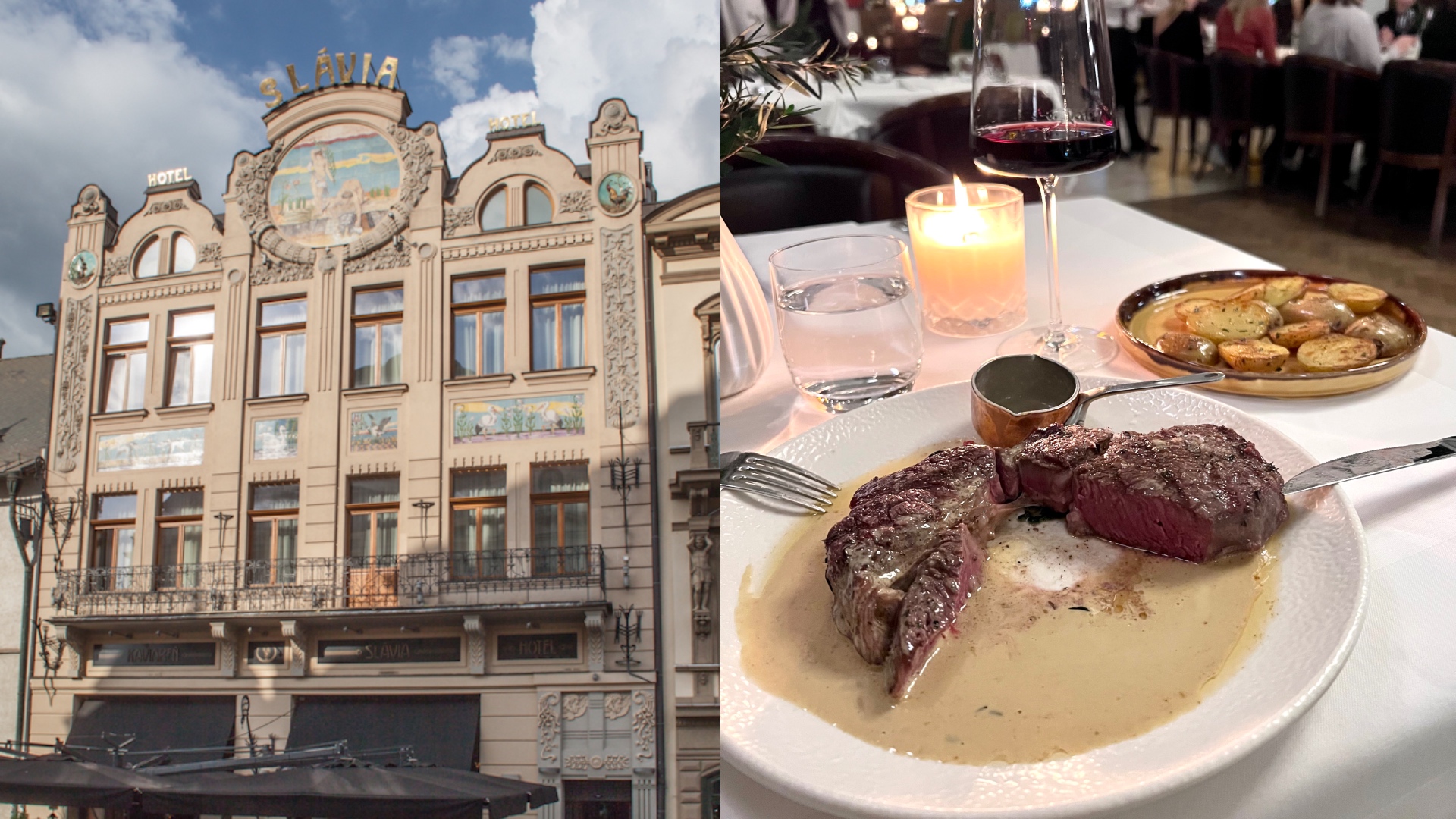 Na lístku nájdeš predjedlá, polievky, hlavné jedlá a to aj vegetariánske a tzv. Slavia classics, čo sú tunajšie stálice ako Koprofka, Stroganoff, rezeň či vyprážaný syr trošku inak. Zároveň sa treba vždy opýtať na steaky. Majú tu totiž vlastnú chladničku na zretie mäsa – tzv. Dry ager a ponuka sa obmieňa.