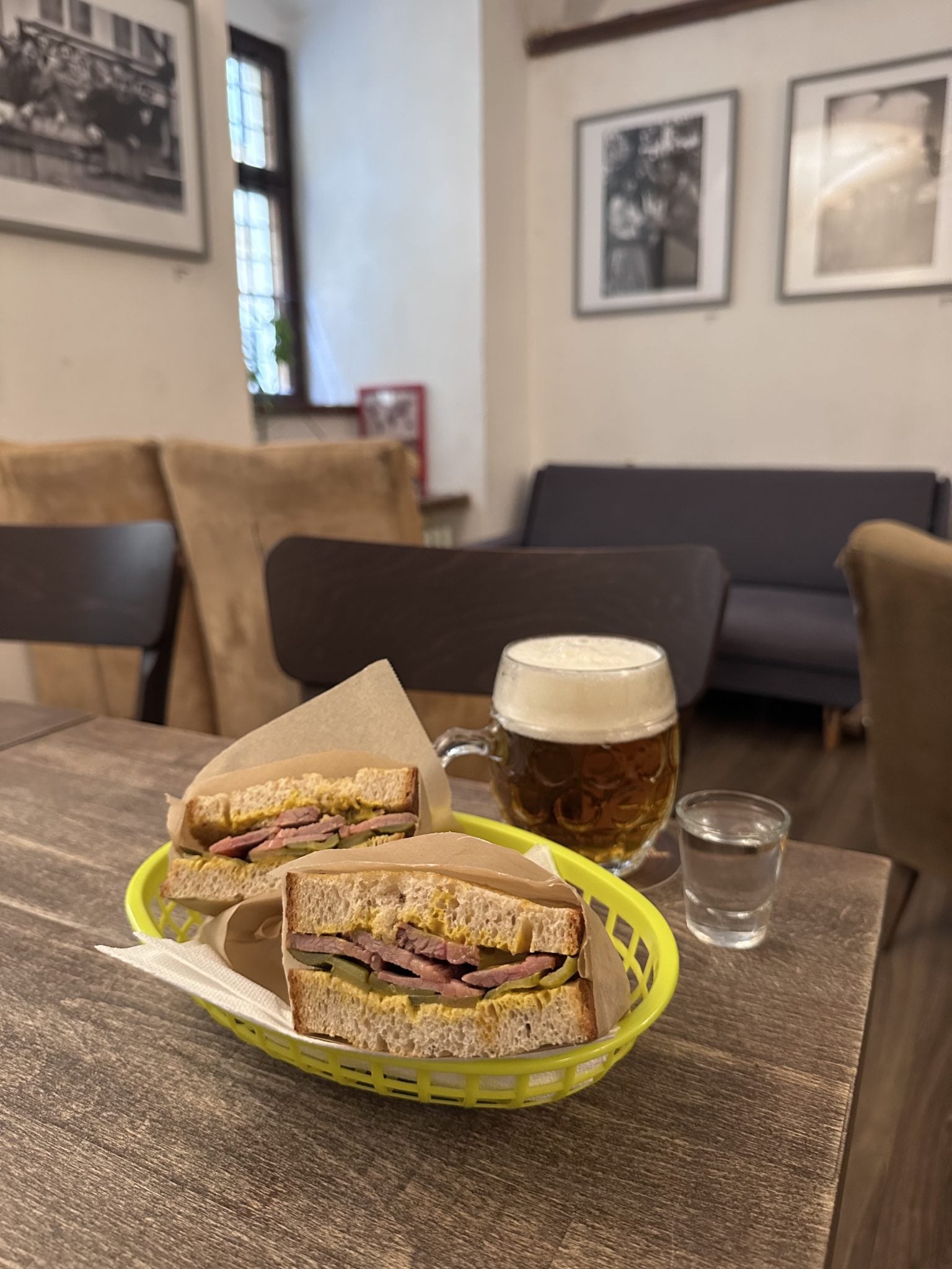 Za cenu 8,9 € dostaneš poriadny kus jedla, po ktorom si môžeš užívať celý večer podľa svojich predstáv. Nevynechaj ani brisket. Na spôsob pastrami pripravené hutné plátky mäsa s horčicou a kyselkavými uhorkami v opečenom chlebe sú za cenu 9,9 € plnohodnotným plničom žalúdka a „uspokojovačom“ chuťových pohárikov na obed alebo pokojne aj pred divokou nocou.