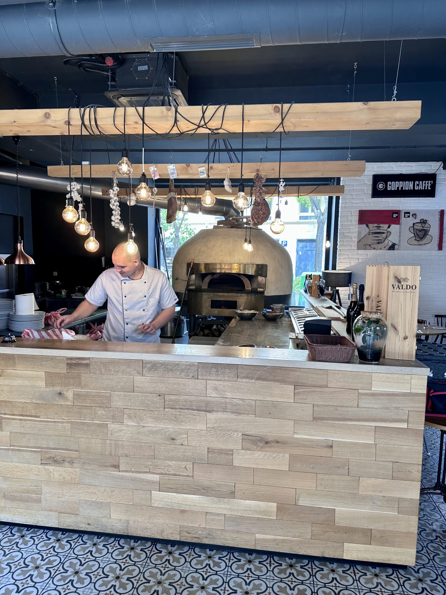 Dômyselne rozdelený na vstupno-uvítaciu časť s pohľadom na sakra kvalitnú a pozoruhodnú pizza pec, kaviarenskú časť a nádherne presvetlenú jedálenskú časť. Tá pôsobí vzdušne, luxusne, ale zároveň tak dôležitým pohodlným dojmom. Všetko je čisté a upravené. Tomuto naozaj nemožno nič vytknúť.