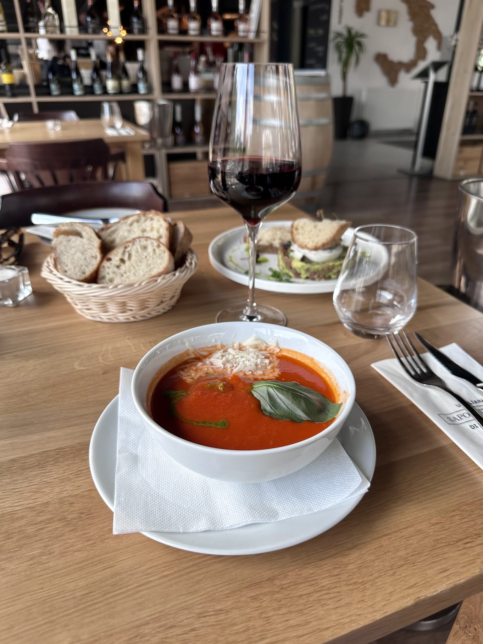 Dokonalosť, na ktorej naozaj nie je čo meniť, bola paradajková polievka. Hustá, výrazne paradajková, dostatok syra a chuť umocnená čerstvou bazalkou aj kvapkou pesta. Cena 4,5 €.