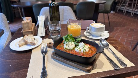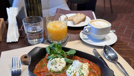 Vajíčka, kaše, croissanty, povinná jazda ako avokádový toast, ale aj vyprážané tvarohové taštičky a moja obľúbená Shakshuka. Tú som si presne dal ja.