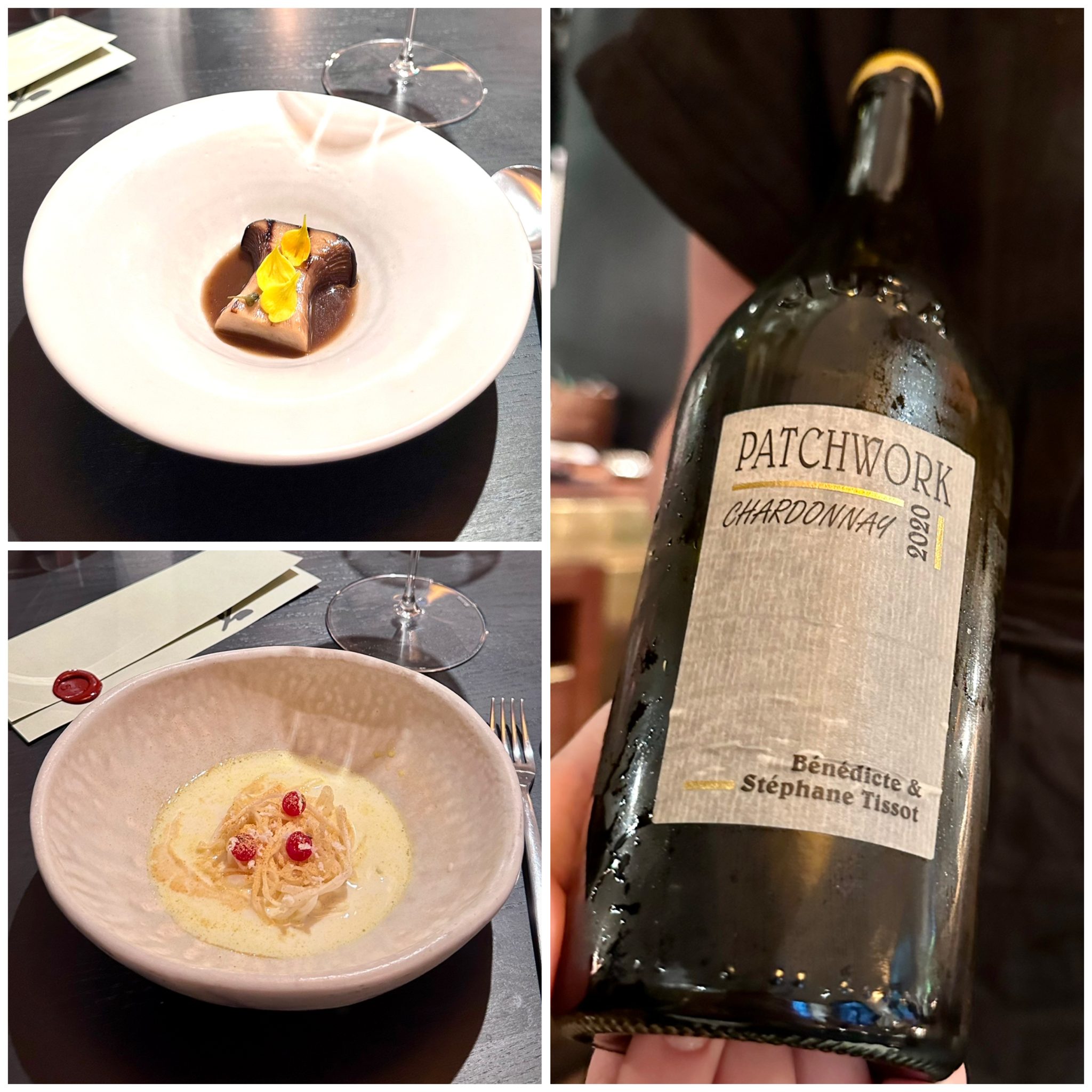 Je už takmer ustálené, že v rámci degustačného menu vo finediningovom podniku sa podáva chod s chlebom. Tu išlo o dokonale chrumkavý a jemný bochník. Náhradou masla bol pečený bravčový „podbradok“ posypaný maďarskou paprikou a harissa pasta. Doplnkom fermentovaná figa, ružičkový kel, dula a karfiol. Láska na prvý hryz. S pohárom nefiltrovaného Chablis z malého francúzskeho vinárstva ide naozaj o zážitok.