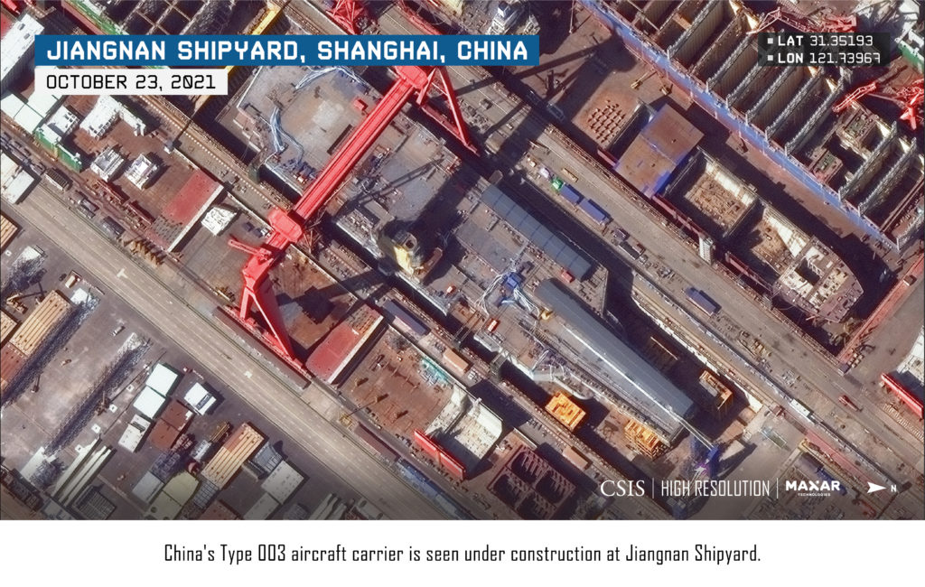 CSIS na základe satelitných snímok spoločnosti Maxar zistilo, že „za posledných niekoľko týždňov došlo k výraznému posunu vo vizuálnom vzhľade Type 003.“