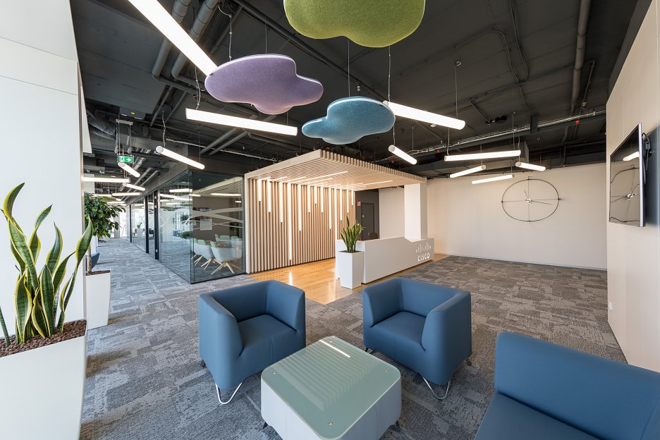 Dispozičné riešenie vychádza z potrieb nájomcu a korešponduje s celkovým zámerom vlastníka budovy. Spoločnosť Cisco je vedúca svetová spoločnosť v oblasti prenosu dát, hlasu a obrazu. Zároveň patrí medzi inovátorov, ktorí pri tvorbe svojich výrobkov kladú vysoký dôraz na dizajn. Tieto charakteristiky spoločnosti sme sa snažili preniesť aj do tvorby interiéru, keď sme si stanovili hlavné body celkového konceptu: