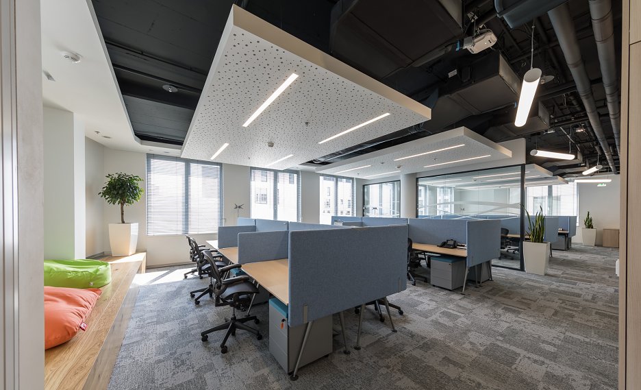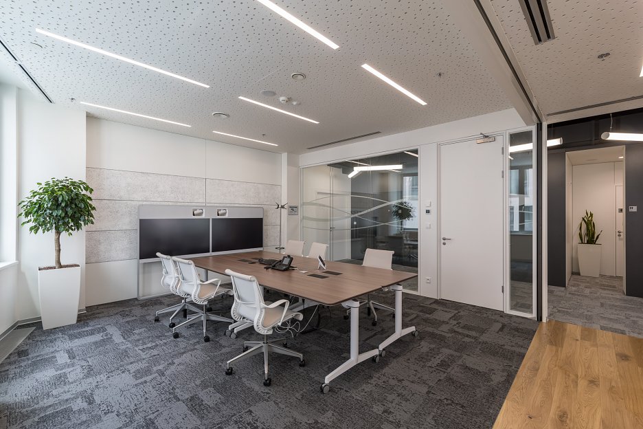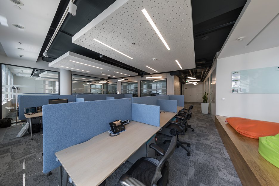 - Pracovné prostredie nadnárodnej IT spoločnosti. Korporátny interiér v prenajatých priestoroch štandardného slovenského biznniscentra.